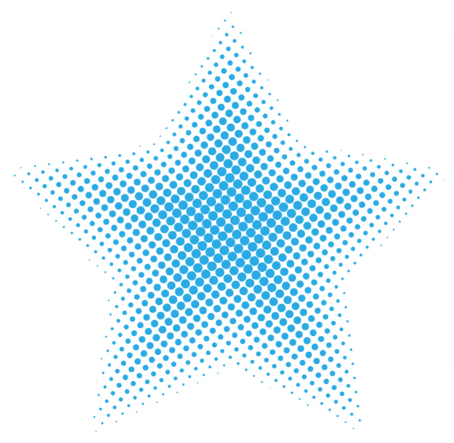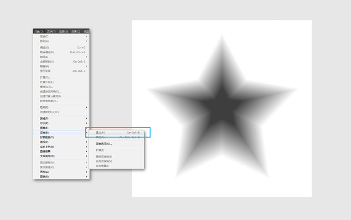首先,还是让我们先来为两个图形上色,关掉两个图形的描边,将小星形设置为深灰色#4D4D4D,大的星形保持白色填充。选中两个星形,进入【对象>混合> 建立】,这时,混合工具就将图形变为了一个渐变过渡的星形。