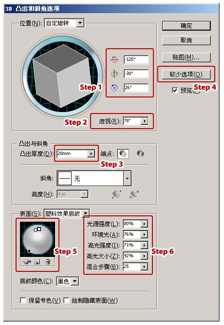 AI干货教程2016-02-15执行“效果>3D>凸出和斜角”命令,弹出凸出和斜角对话框。