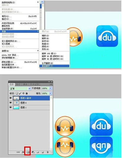 ctrl+r复制新图层,选择编辑—变形—垂直翻转,调整好合适位置
