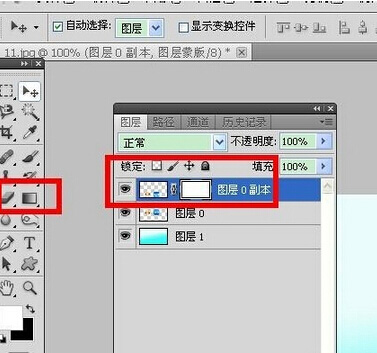 为复制的素材图片添加图层蒙版,接着选择线性渐变在图层蒙版上拖出渐变,这样就做出倒影的效果了。